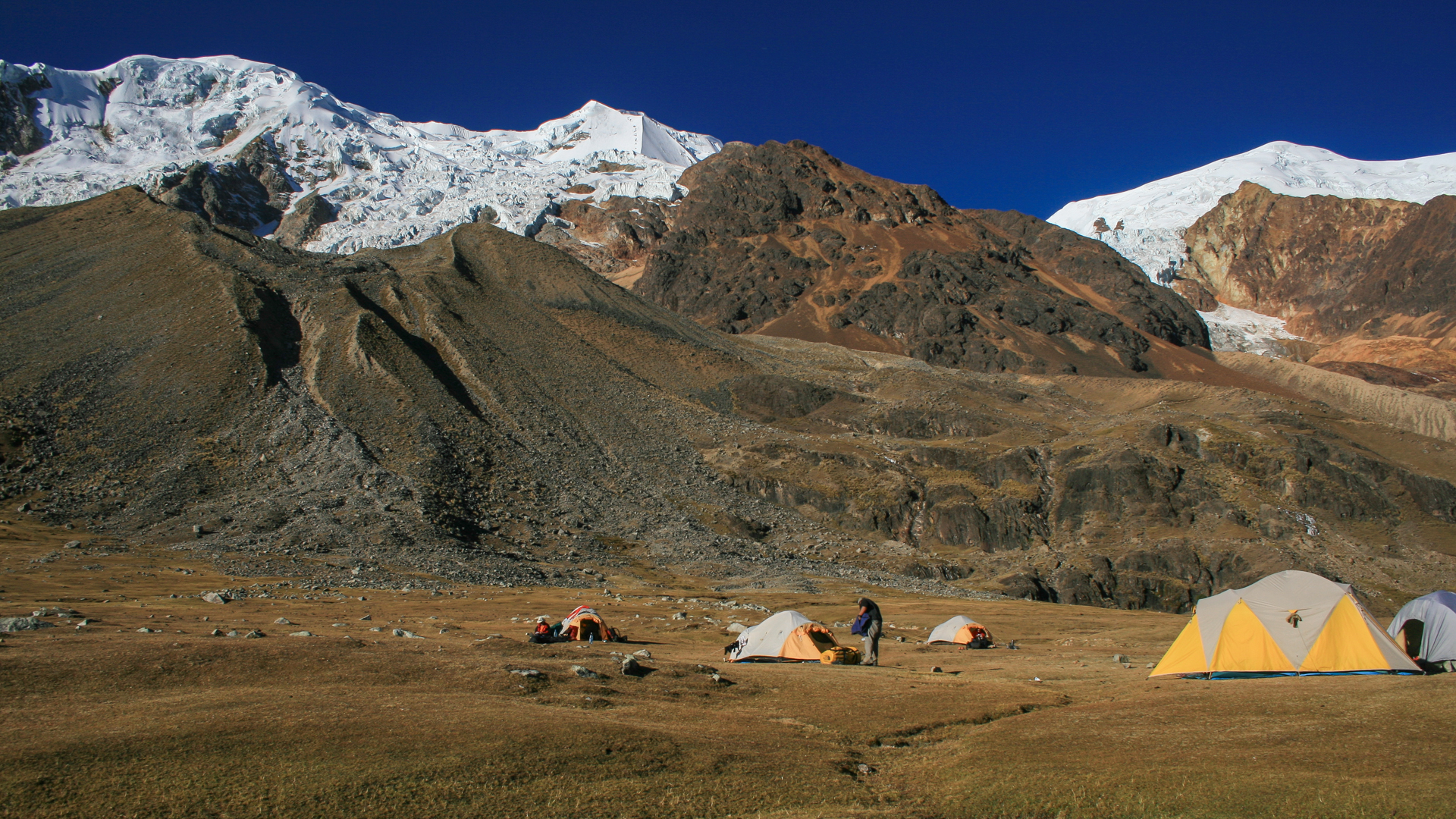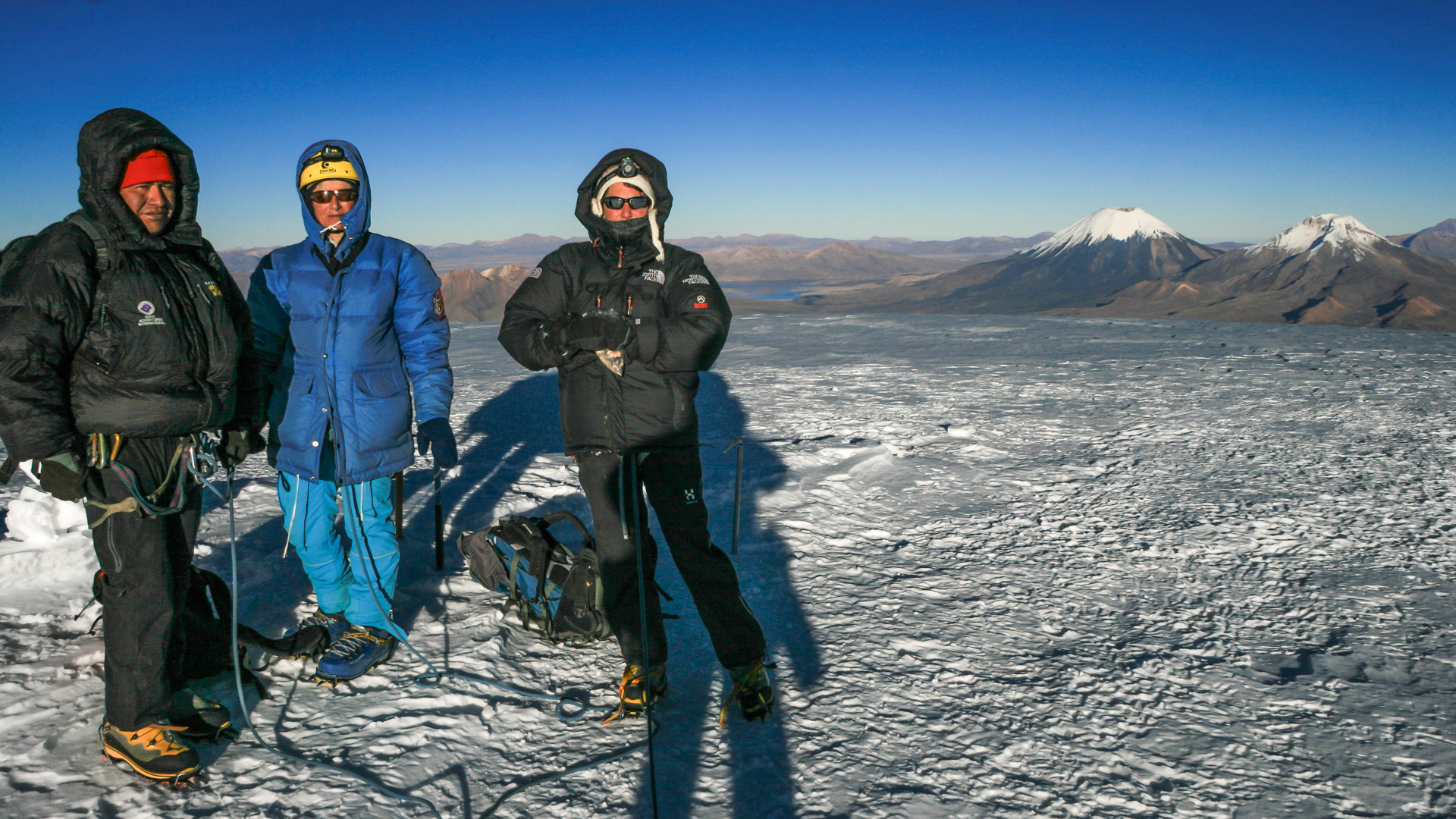 Drei Fünftausender, Janchallani, Tarija Peak, Pequeno Alpamayo. Die Sechstausender Huayna Potosi, Illimani und Sajama sind schon Herausforderungen an Ausdauer und Durchhaltewille (ein ca. halbjährliches, gezieltes Training sollte Voraussetzung sein), bei den zum Teil unangenehmen Zustiegen und kalten, starken Winden an den Gipfeln. Aber all das wird dann wettgemacht mit der sehr guten Organisation von Thomas und seinem bolivianischen Team. Bergführer Oswaldo ein besonderes Kränzchen, auch an „Küchenchef“ Gustavo, immer gut aufgelegt und der sehr gute, schmackhafte Sachen auf den Teller bringt und das zu jeder Tages- und Nachtzeit! Und erst die verschiedenen Hochträgermannschaften, die grossartiges leisten – auch Frauen sind dabei!