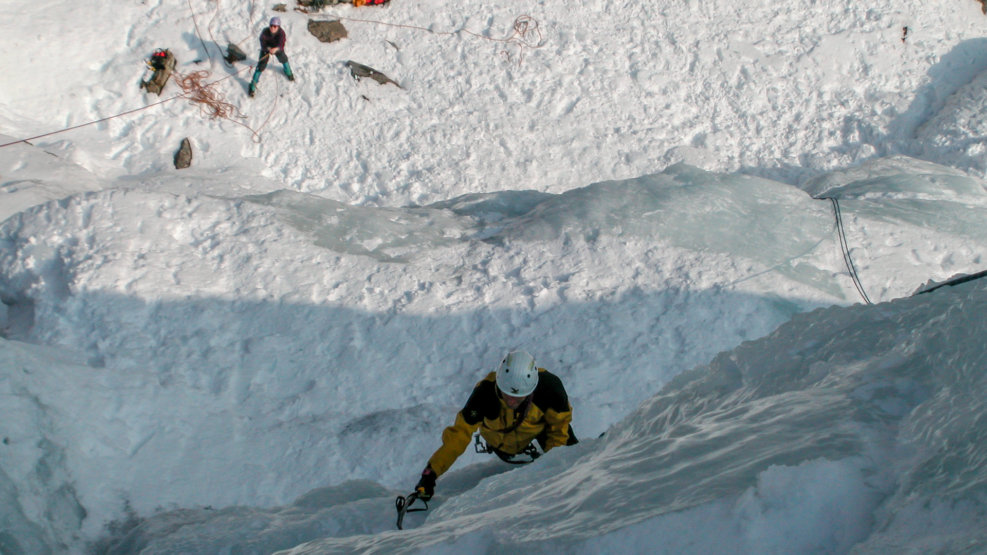 Erlerne und erlebe die Materie Eis und die Faszination des Steileiskletterns