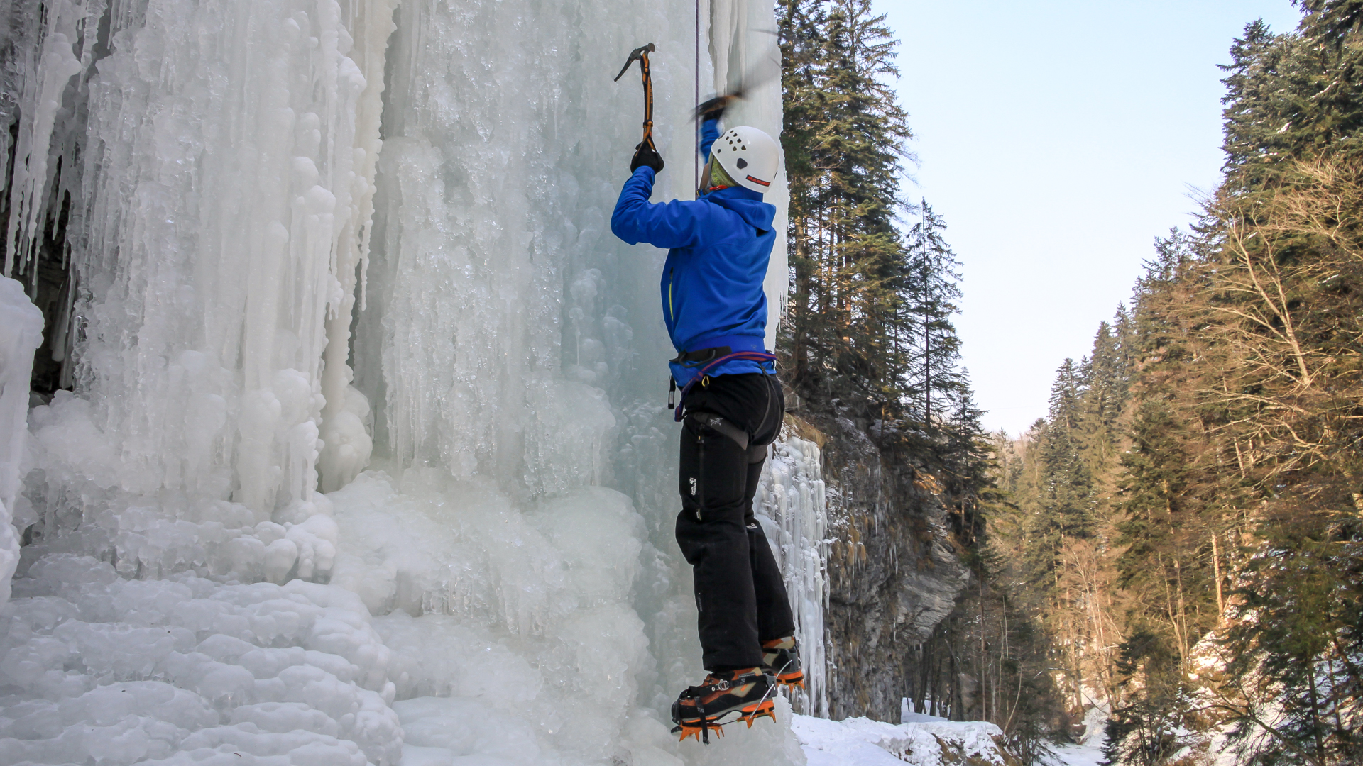 Im Bergsport gehört Steileisklettern zu den anspruchsvolleren Disziplinen. Mit entsprechenden Kenntnissen, Vorsicht, Planung und Erfahrung wird aber die Begehung eines Eisfalls zu einem unvergesslichen Erlebnis.