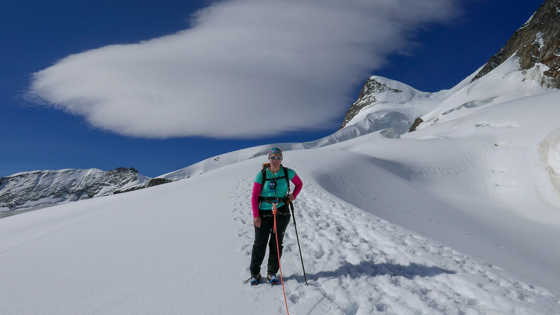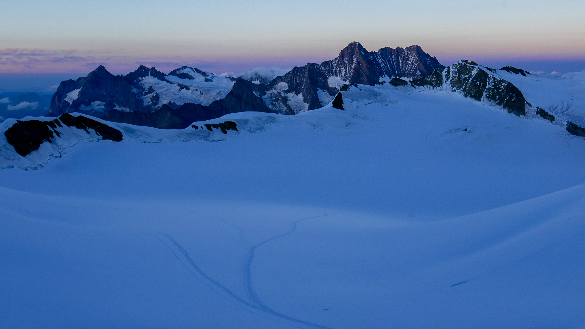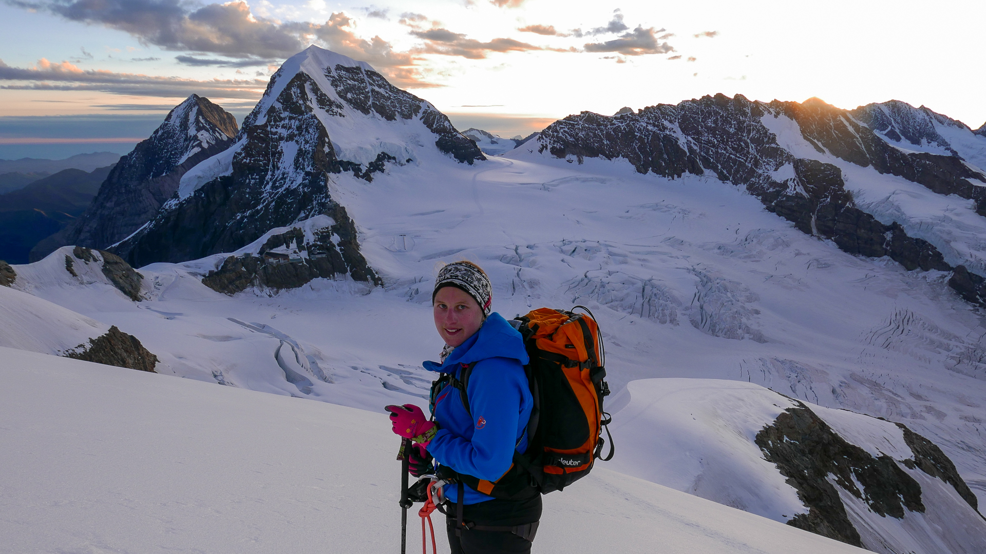 Am ersten Tourentag steht die Besteigung des Mönchs auf dem Programm – ideal zur Akklimatisation und als Einstieg in die hochalpine Umgebung. Über Firnfelder, in leichter Kletterei und über einen serh luftigen Gipfelgrat erreichst du den aussichtsreichen Gipfel mit Blick auf Eiger, Jungfrau und das endlose Eismeer.