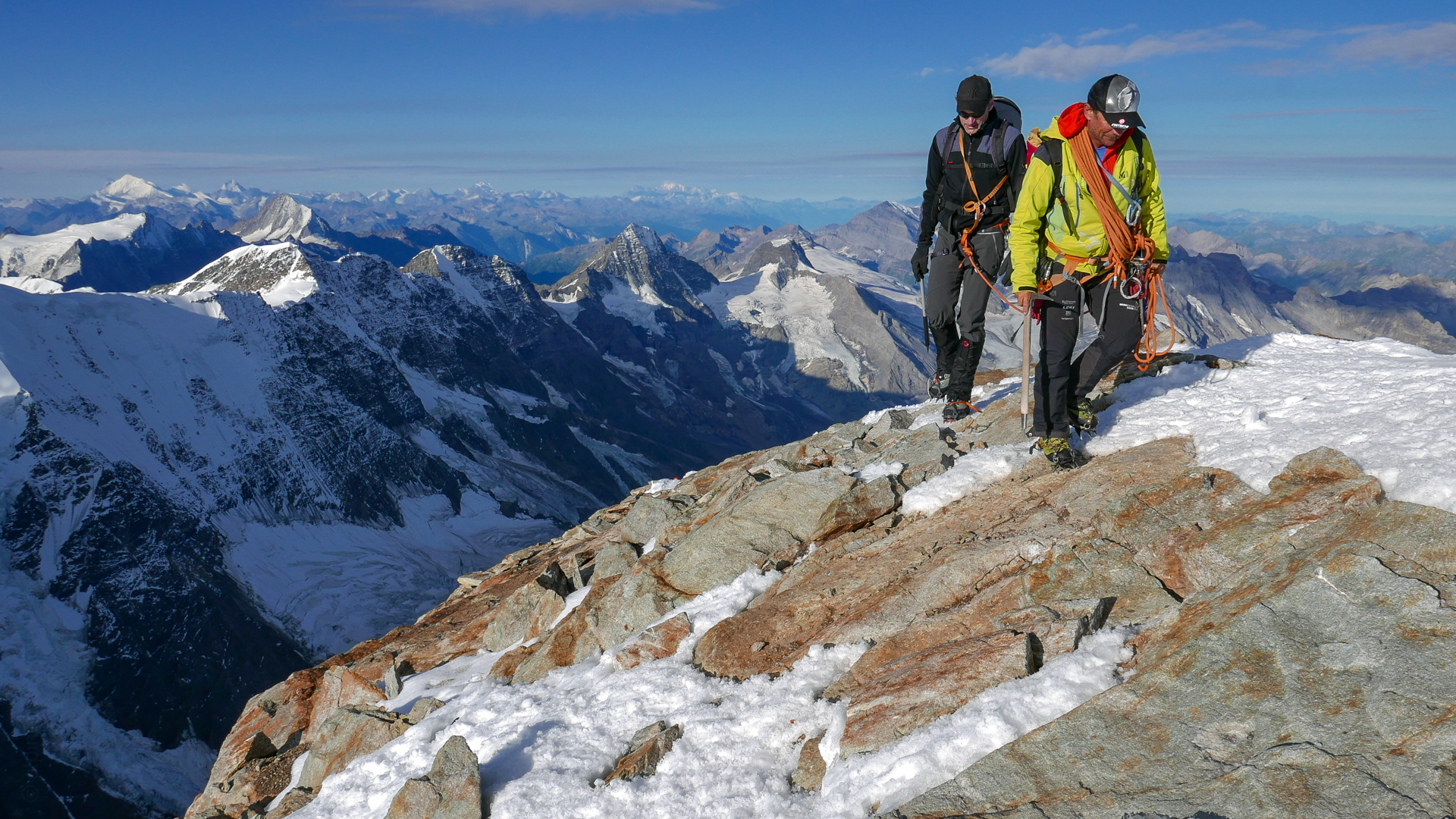 Hochtouren am Seil eines erfahrenen und qualifizierten Berufs-Bergführers sind die Krönung des Bergsteigens. Vertrauen und Rücksicht sind das A und O, um aus deinen Bergferien ein unvergessliches Erlebnis zu machen. Mit kleinen, den Anforderungen der Touren angepassten Gruppen und den bewährten Programmen zu den schönsten Gebieten der Alpen garantieren wir dir grösstmöglichen Erfolg und bleibende Erinnerungen ohne unnötiges Risiko. Dabei übernachten wir in ausgesuchten Hütten, die mit Charme und Freude von kompetenten Hüttenwarten geführt werden. Je nach Tourengebiet erfolgt die An- und Rückreise ökologisch sinnvoll mit öffentlichen Verkehrsmitteln oder respektvoll mit dem Bus der Bergsportschule. Und ganz selbstverständlich stellen wir dir erstklassige Hochtourenausrüstung zur Verfügung. Welches ist dein nächstes Gipfelziel?