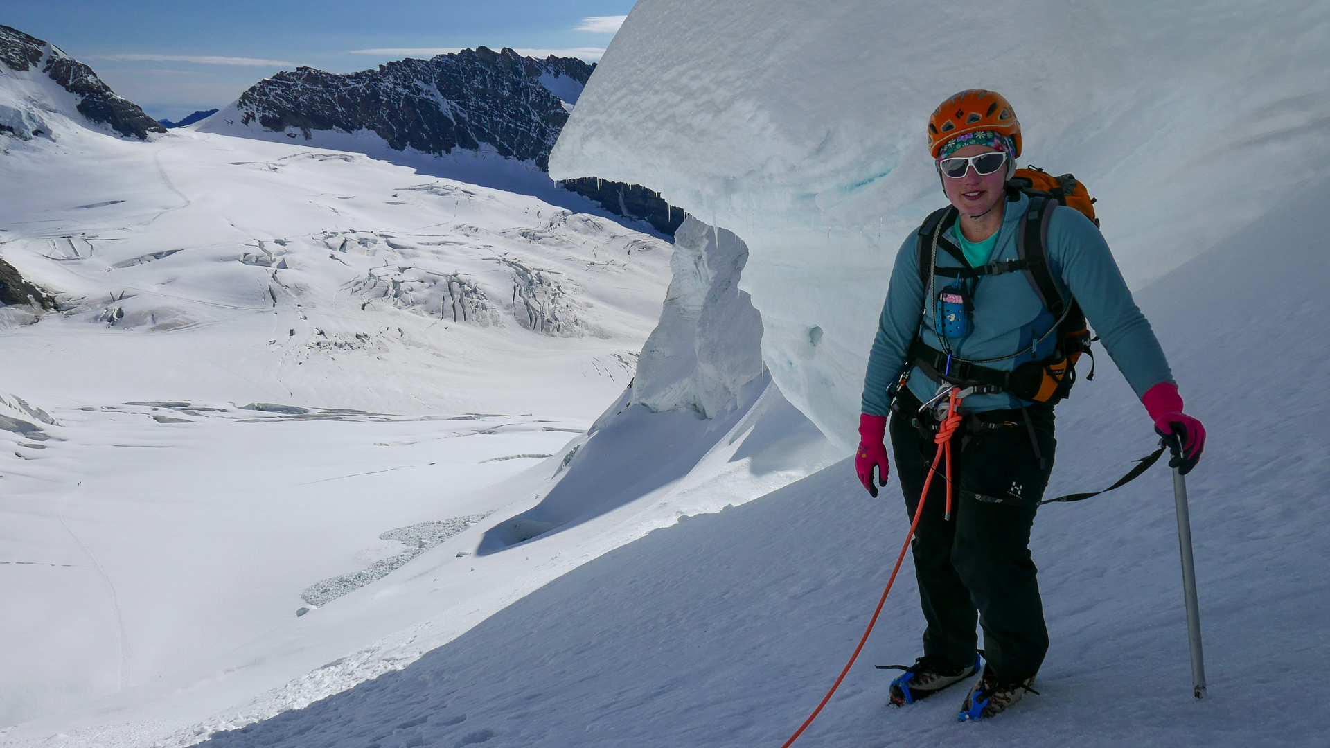 Am zweiten Tag folgt die Krönung: die Besteigung der Jungfrau. Diese anspruchsvollere Tour erfordert Trittsicherheit, gute Kondition und sicheres Gehen mit Steigeisen. Gemeinsam mit deinem Bergführer meisterst du Gletscherpassagen und ausgesetzte Stellen, bevor du auf dem Gipfel mit einem atemberaubenden Panorama belohnt wirst.