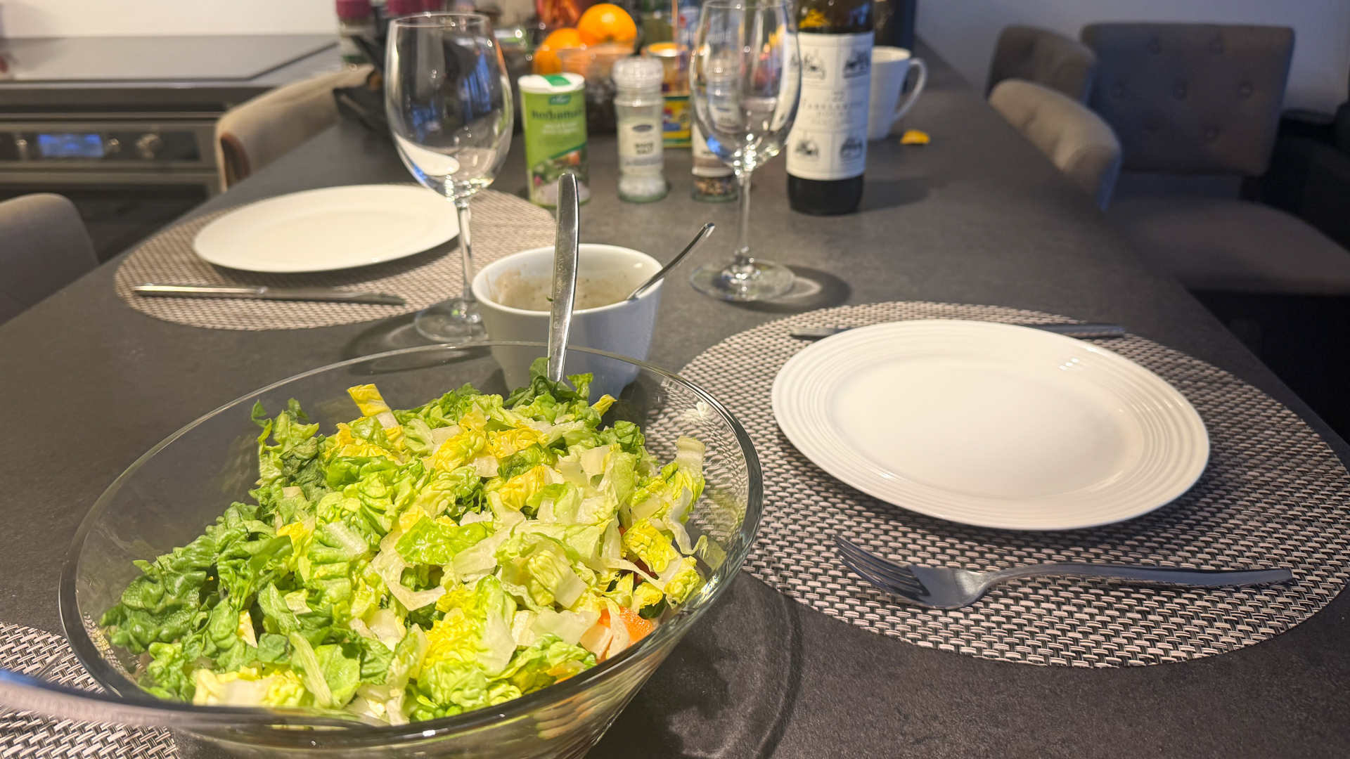 Wir kaufen gemeinsam ein und unterstützen uns gegenseitig beim Kochen, Abwaschen und Aufräumen.