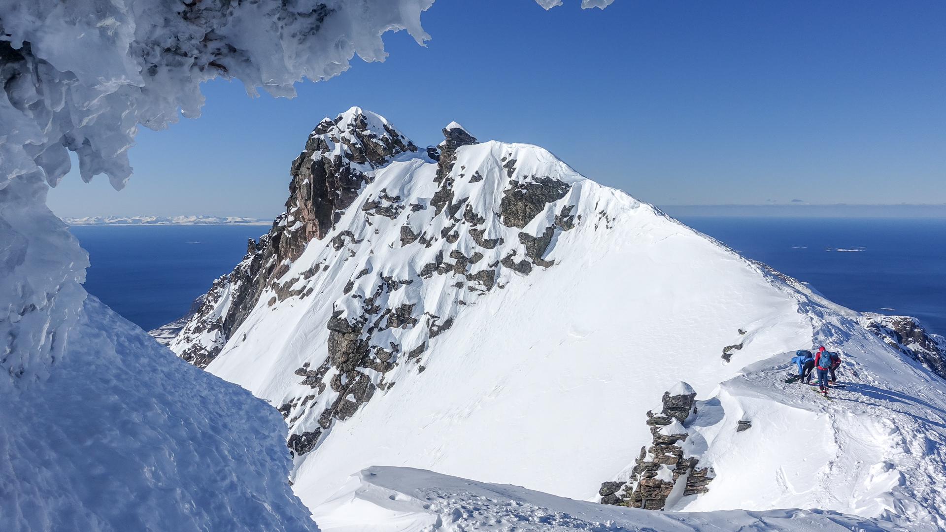 6. Tag: Direkt am Meer beginnt der Aufstieg zum Store Hesten, 874 m. Eine Tour mit vielen tollen Aus- und Einblicken und einer tollen Abfahrt. Lässt sich auf Wunsch auch mit dem Litlehesten, 679 m, kombinieren.